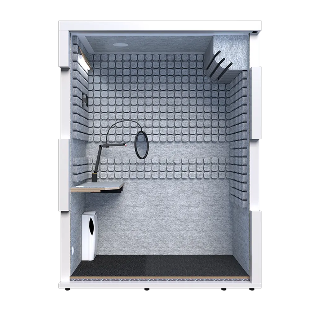 Las cabinas Studiobricks incorporan un sistema de doble pared, que garantiza 45 decibelios de insonorización acústica.